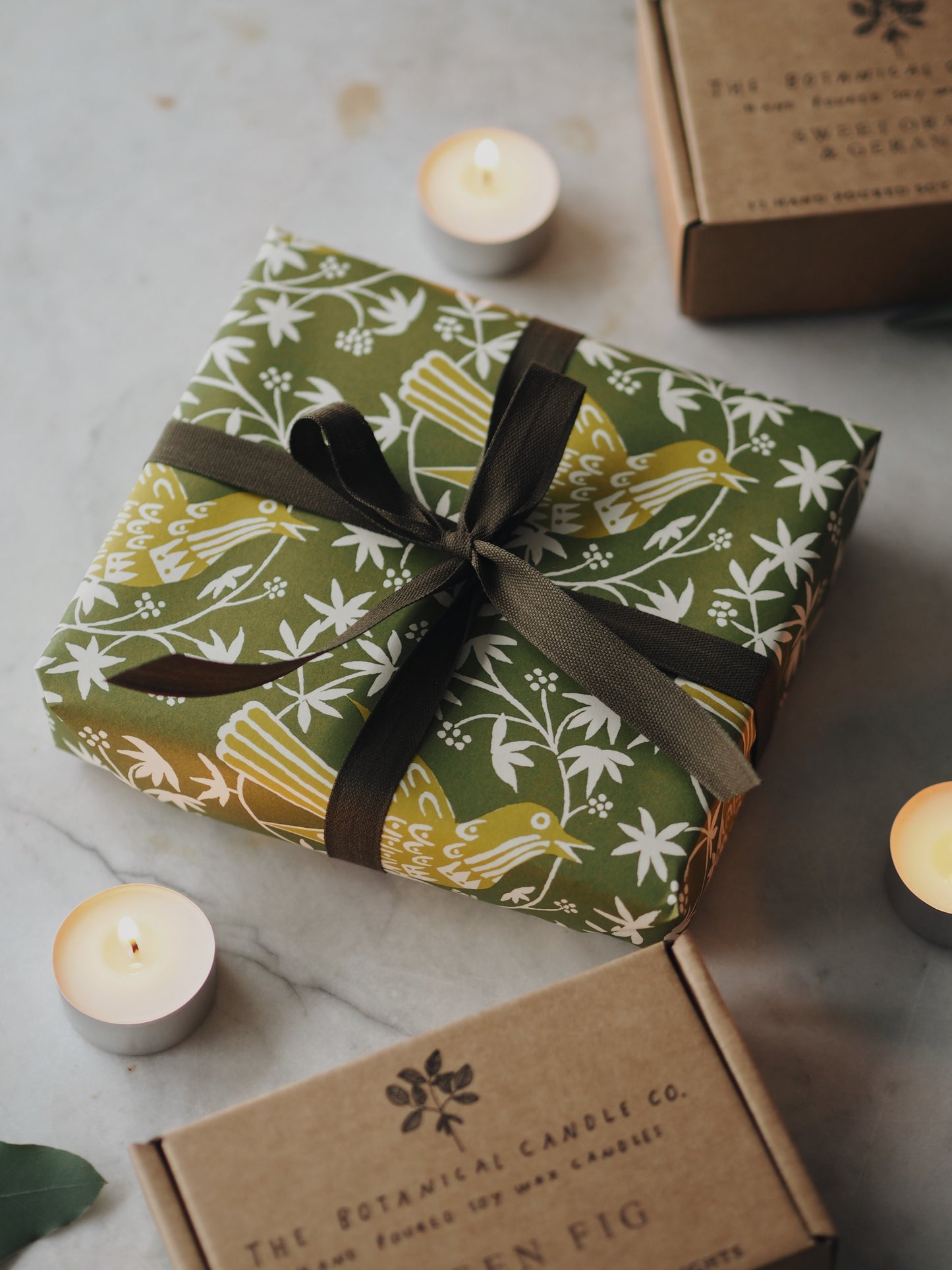 Simply select two boxes of tealights in scents you think they'll love, and we’ll wrap them in luxurious printed paper, finished with a soft cotton ribboned bow. Ready to gift, no wrapping required.