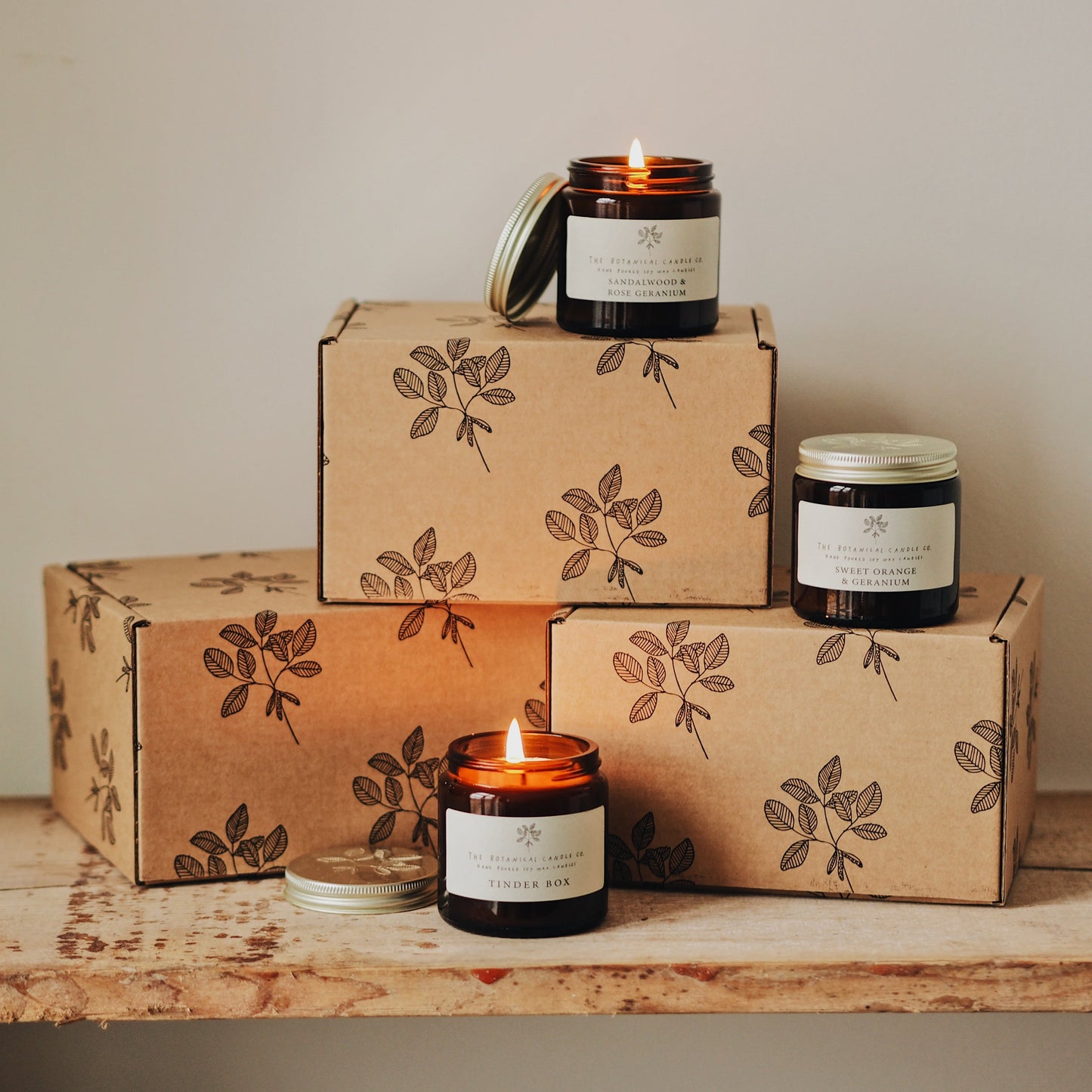 Choose from 3 sizes of candle to suit your budget. All candles are presented in amber glass jars with embossed gold metal lids. The candles will be delivered in a recycled cardboard outer box, nestled in printed paper.