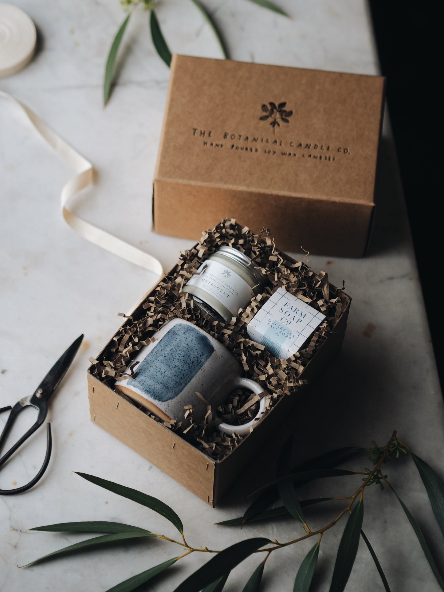 Our standard gift boxing includes a screen printed kraft gift box with recycled paper filling and a cotton ribbon. Or, upgrade to luxury gift boxing which includes an embossed rigid archive-style gift box with kraft zig-zag shredded filling and a cotton ribbon. These boxes are ideal for re-using afterwards and are of exceptional quality.