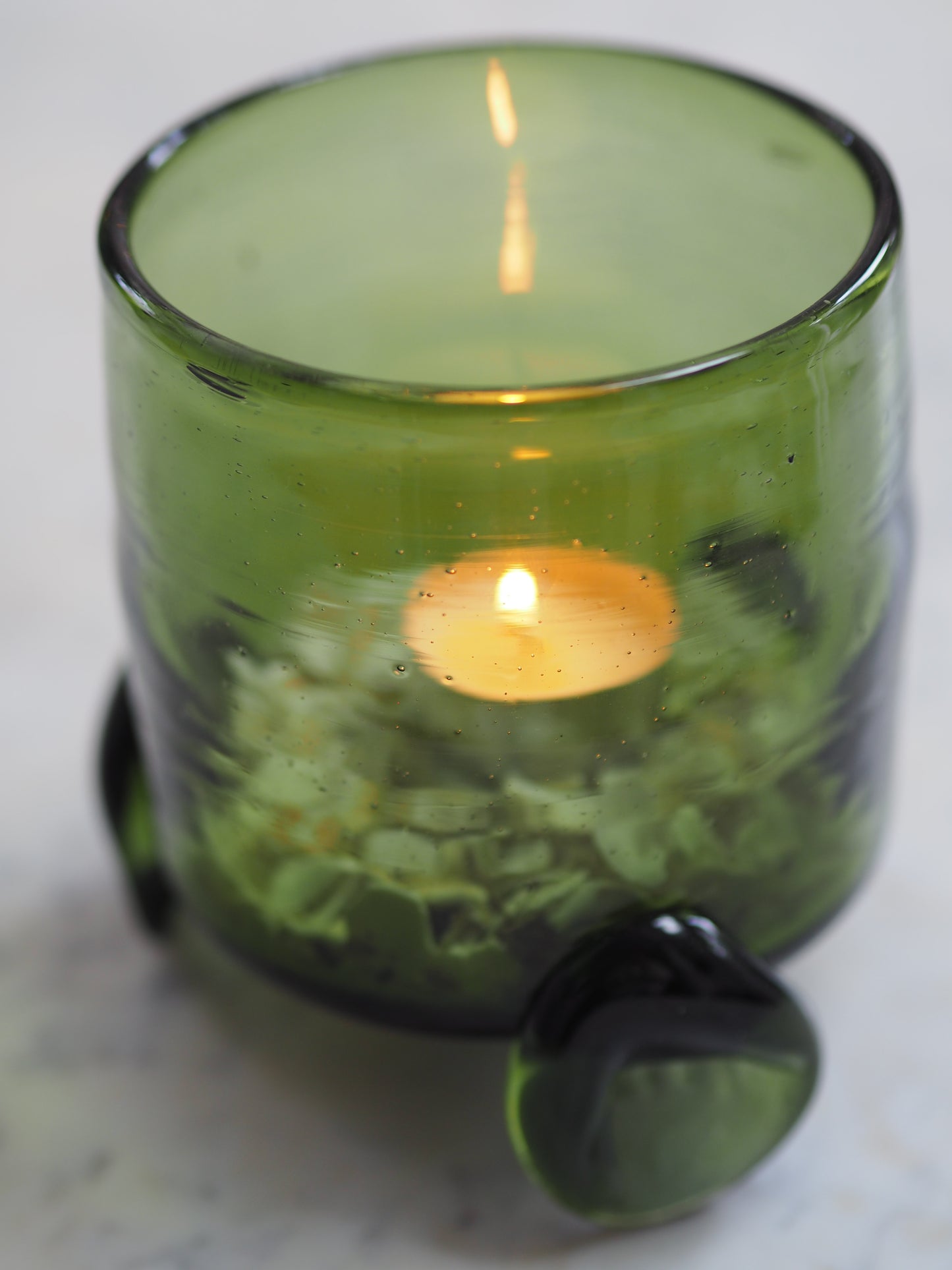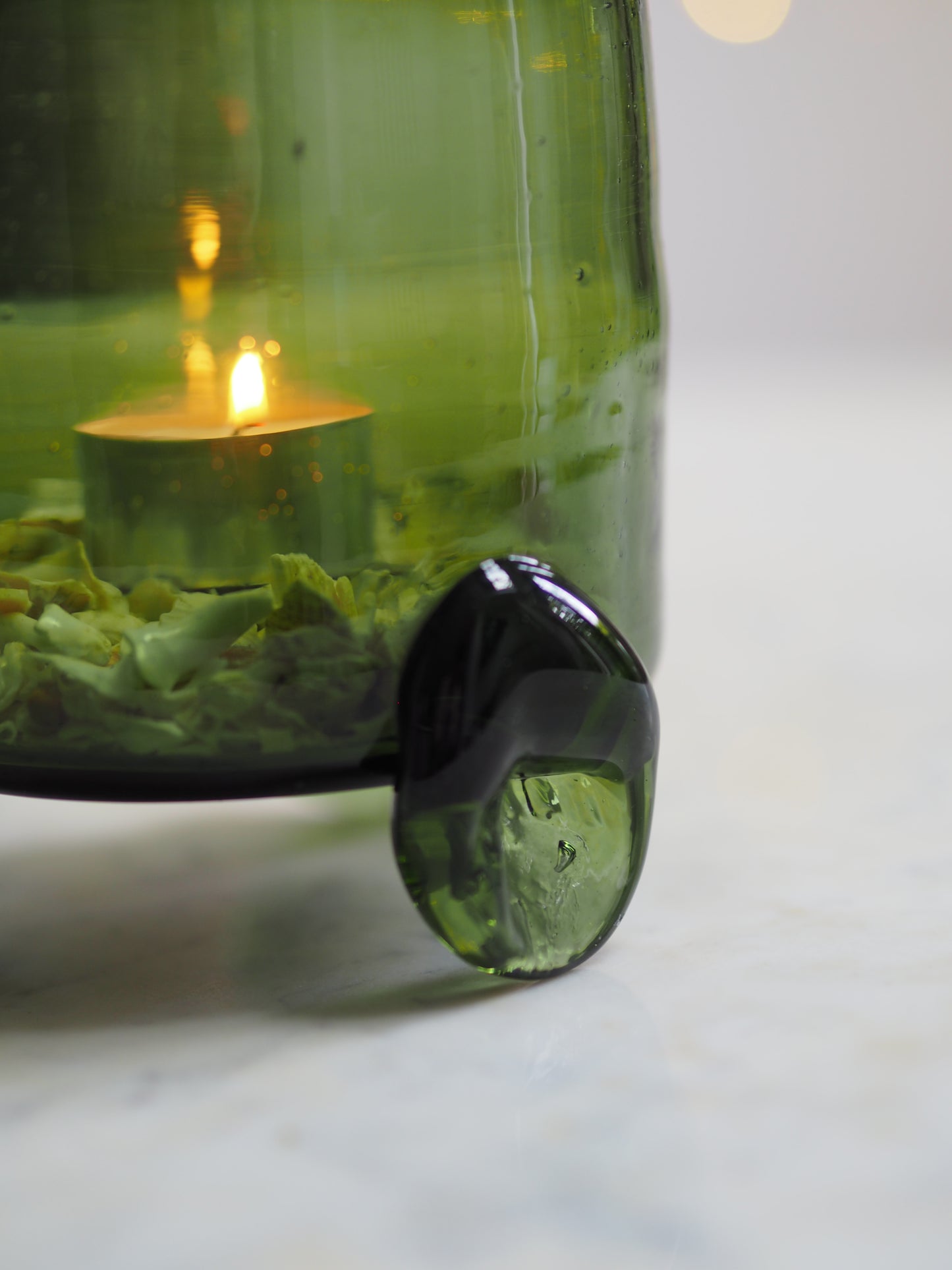 This charming vessel by La Soufflerie is mouth-blown from recycled glass. 'Green smoke' is made from a mixture of green and grey glass, giving a muted, organic tone.