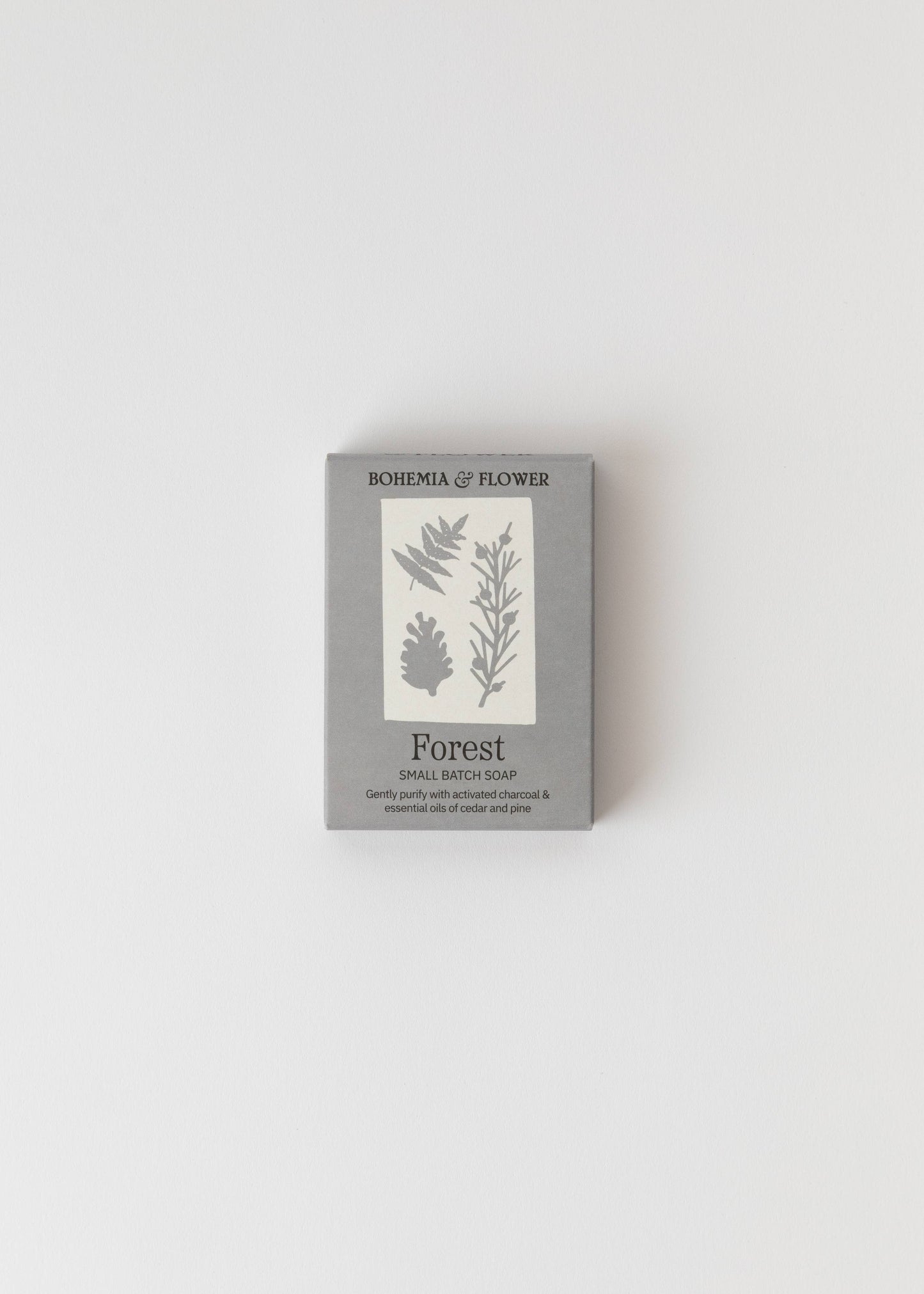 Small batch plant based bar soap with activated charcoal & essential oils of cedarwood & pine, juniper & rosemary. The Forest bar is inspired by walking in woods, breathing the bark & leaves.
