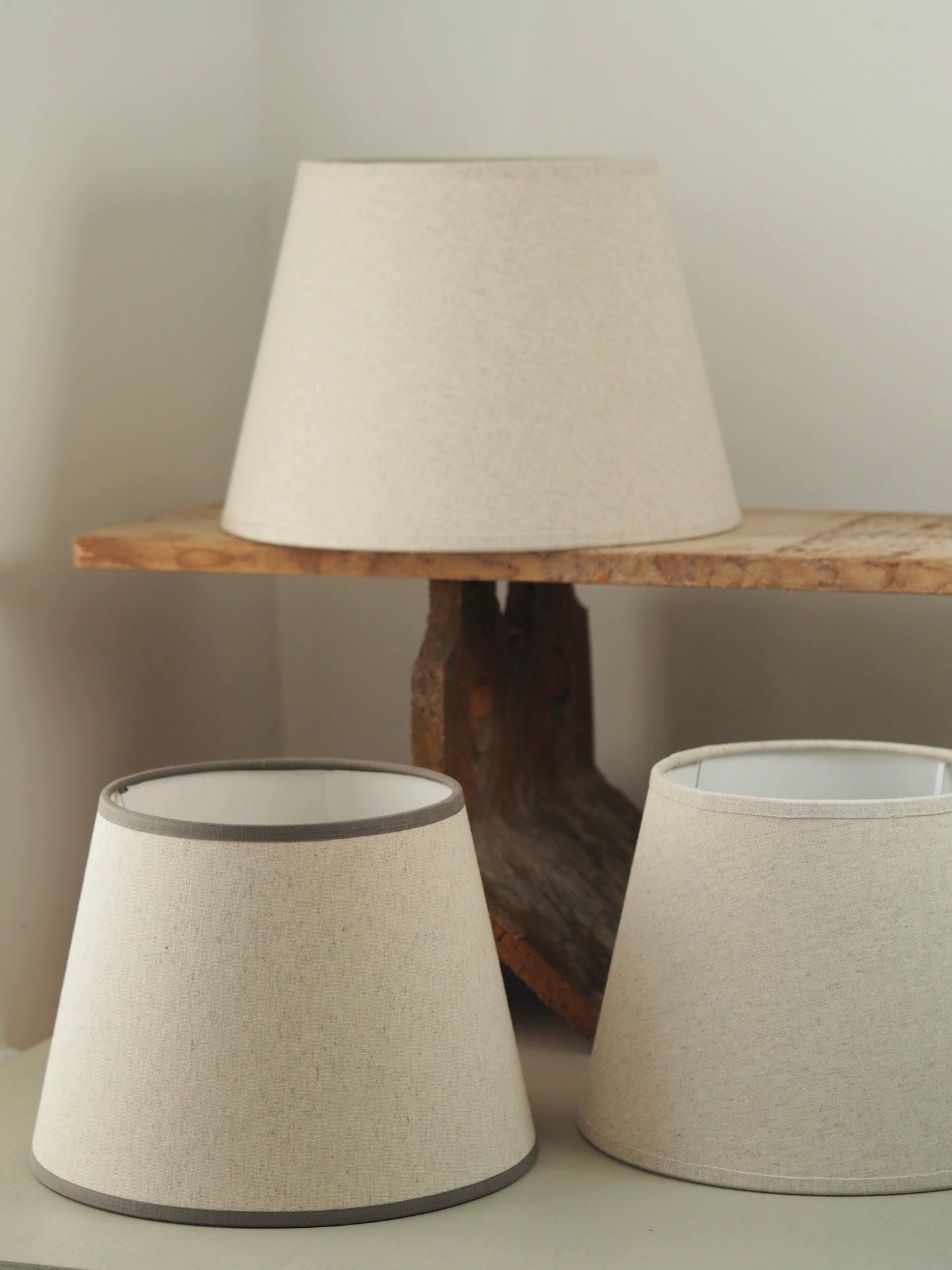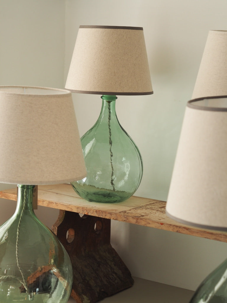 These subtly tapered linen lampshade are made right here in Dorset. They work beautifully with our range of demijohn lamps.