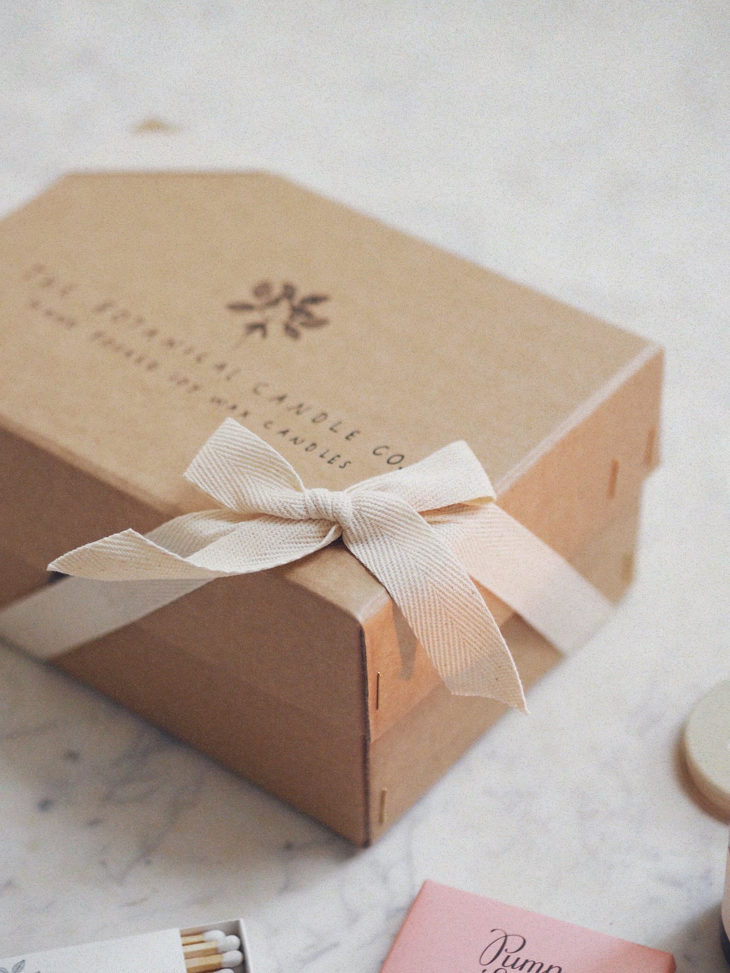 Packed inside a luxury archive style gift box which are handmade in the UK. Each item is nestled inside shredded kraft paper and the box is neatly tied with a cotton ribbon.
